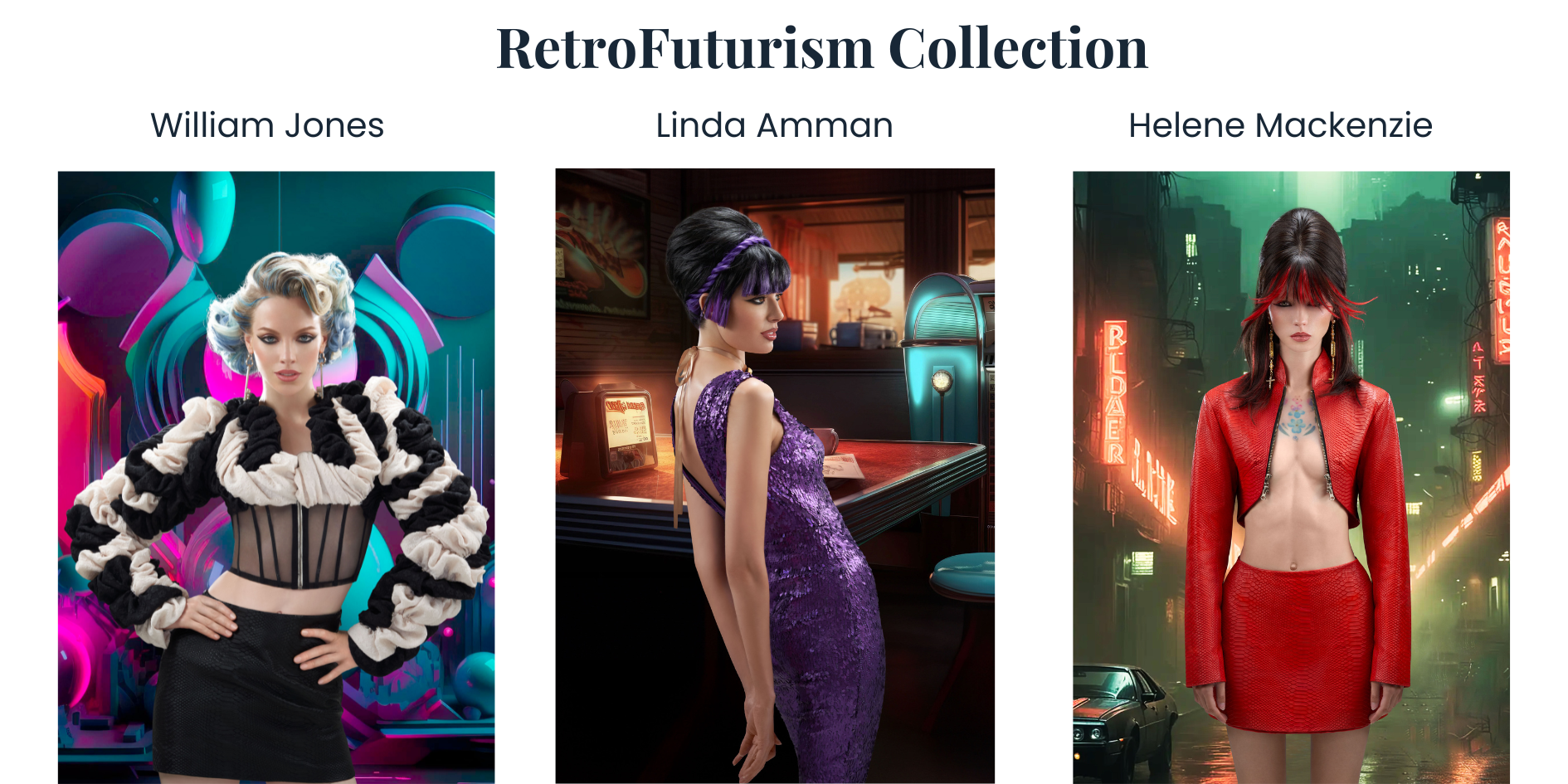 For Retrofuturism, the group reimagined the future through the lens of the past — drawing inspiration from cyber aesthetics, classic silhouettes, and powerful femininity.